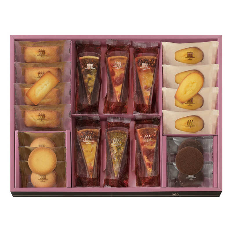 フィナンシェ・マドレーヌ×各4、タルトフリュイ×6(4種)、ラング ド シャ/プレーン×3・チョコレート×2