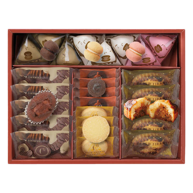 - 焼きティラミス・焼きティラミスショコラ×各5、サクッチ ホロッチ/ミルク・チョコ×各3・いちご×2、ハイカカオブラウニー・芳醇チーズサブレ×各4
