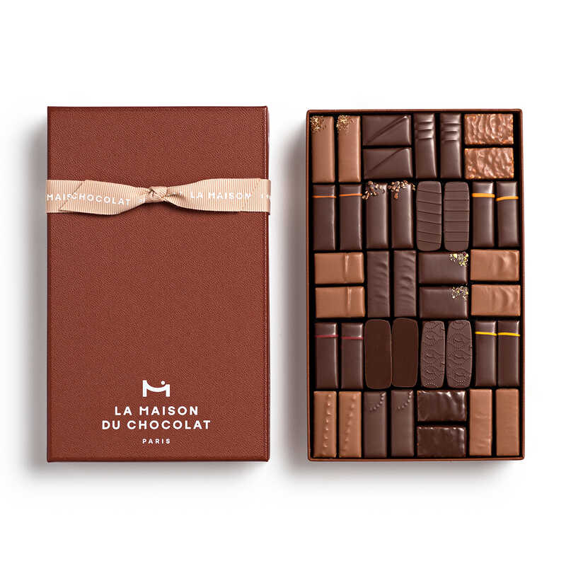 ダークやミルクの様々なガナッシュとプラリネ40粒を箱に収めたフランスらしい詰合せ。