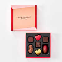 日本の柑橘を使った新フレーバー「クール ココロ アグリュム キャラメル」やゴロゴロとしたナッツの食感が楽しめる「プラリネ ピスターシュ」、厳選されたカカオを使用した「ピエール マルコリーニ グラン クリュ」など7種の詰め合わせ。