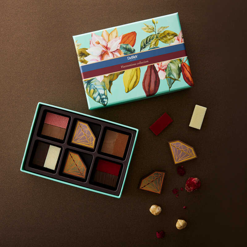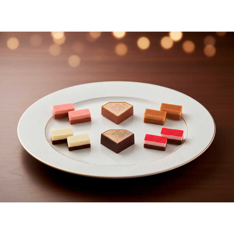 日本生まれの生チョコレートがベルギー・アントワープにて再解釈と共に更なる進化を遂げました。ストロベリー&ミルクチョコレート、バニラ&ダークチョコレート、ヘーゼルナッツ&ミルクチョコレート、ラズベリー&ダークチョコレートの生チョコレート4種と、人気な甘く香ばしい風味のキャラメル、新作のストロベリー&レモンのダイヤモンドショコラを詰め合わせました。品種にもこだわり選定した香り高いカカオのアロマとフルーティーなテイストが折り重なった二層構造のハーモニーをベルギー・アントワープからお届けいたします。