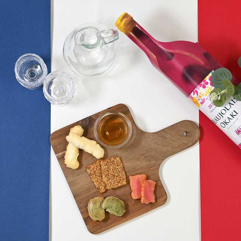 バジルやトマト、チーズなど、ワインに合う洋風おかきが、本物そっくりなワインボトル型の箱の中に入っています。見た目も中身も喜ばれること間違いなしの一品です。