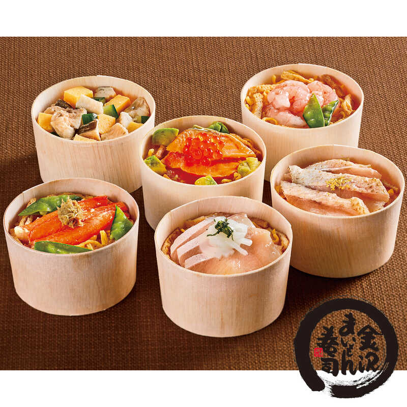 のどぐろ、かに、甘えび、ぶり、金沢名店自慢の海鮮を6種のちらし寿司に。最新の冷凍技術で旬と鮮度を閉じ込め、〈金沢まいもん寿司〉の味をそのままお届けします。