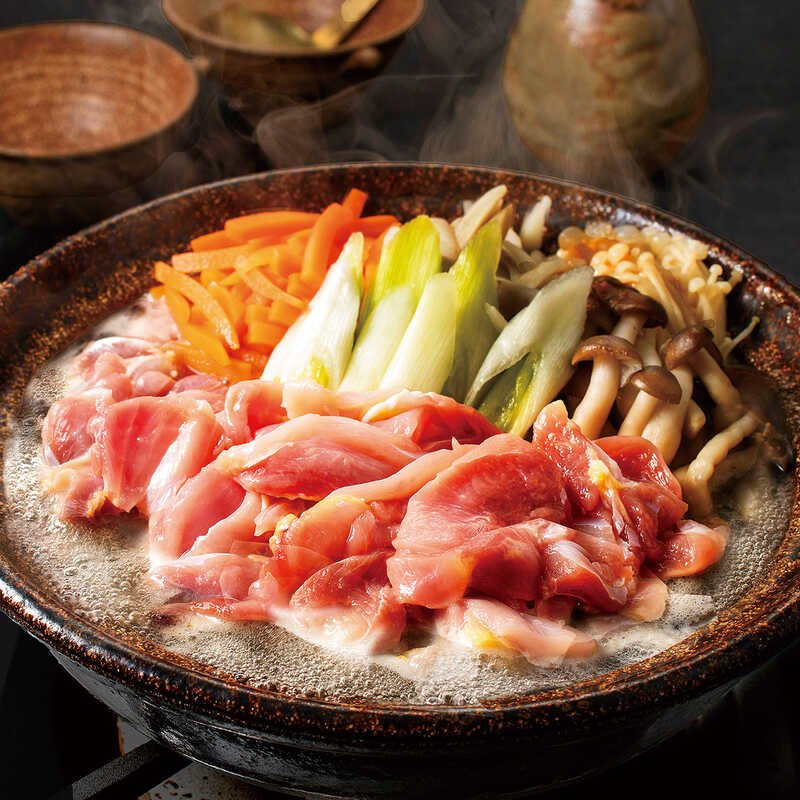 鹿児島県鹿屋市の農場で卵から育てられた希少な日本雉の鍋セットです。独特のうまみと歯応え、滋味深い味わいを〈乃木坂しん〉特製のポン酢でお楽しみください。