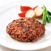 神戸牛・松阪牛・近江牛、三大銘柄牛100%の贅沢なビーフハンバーグ。切り口からあふれ出る肉汁は圧巻です。