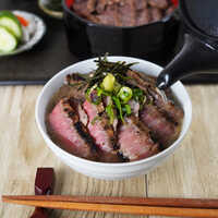 ブランド和牛ならではの濃厚な旨味と、食欲をそそる甘口のタレと〆の出汁まで美味しい牛肉のひつまぶし3種です。低温調理したブランド和牛のモモ肉は柔らかくジューシーで、風味豊かな味わいが口の中一杯に広がります。お好みのお召し上がり方で、最後まで美味しくお楽しみください。