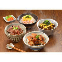 黒毛和牛を特製のタレで味付けして仕上げた「黒毛和牛ステーキ丼・そぼろ丼」・紅ずわいがにを相性の良い酢飯で仕上げた「紅ずわいがにかに飯丼」・国産のうなぎを厳選した蒲焼のタレで仕上げた「国産うなぎ丼」。4種類のどんぶりをご堪能下さい。
