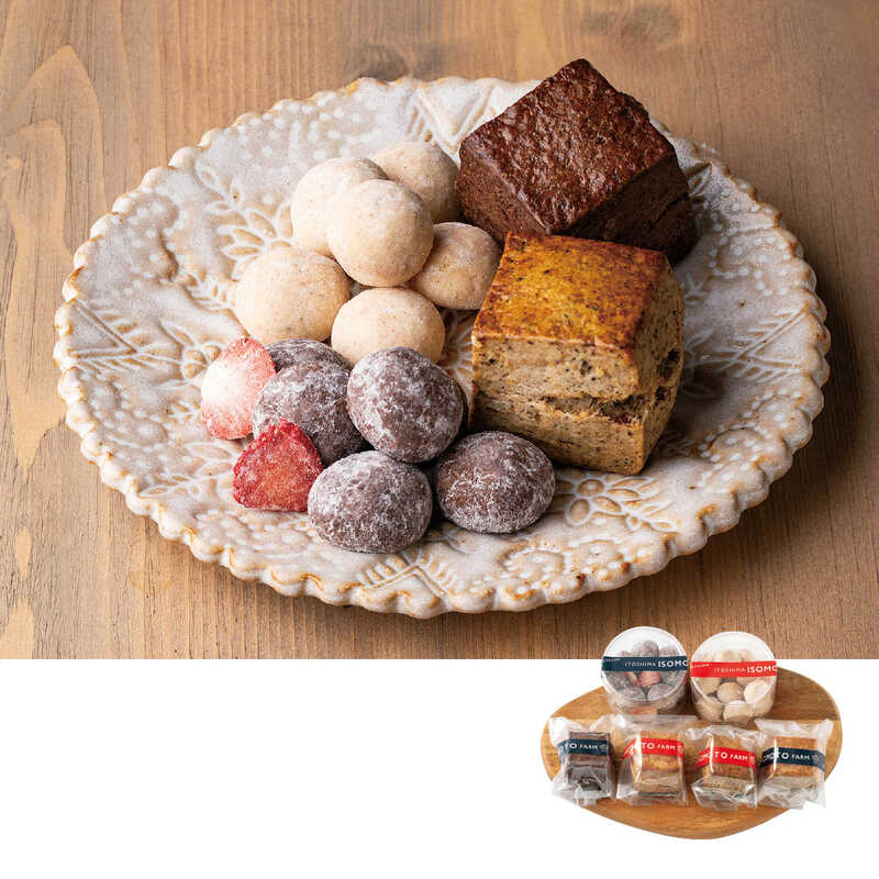 - あまおうスノーボール・あまおうスノーボール・(チョコ)(各65g)×各1、苺酵母のスコーン(プレーン・チョコ・シナモン・はちみつ紅茶)×各1