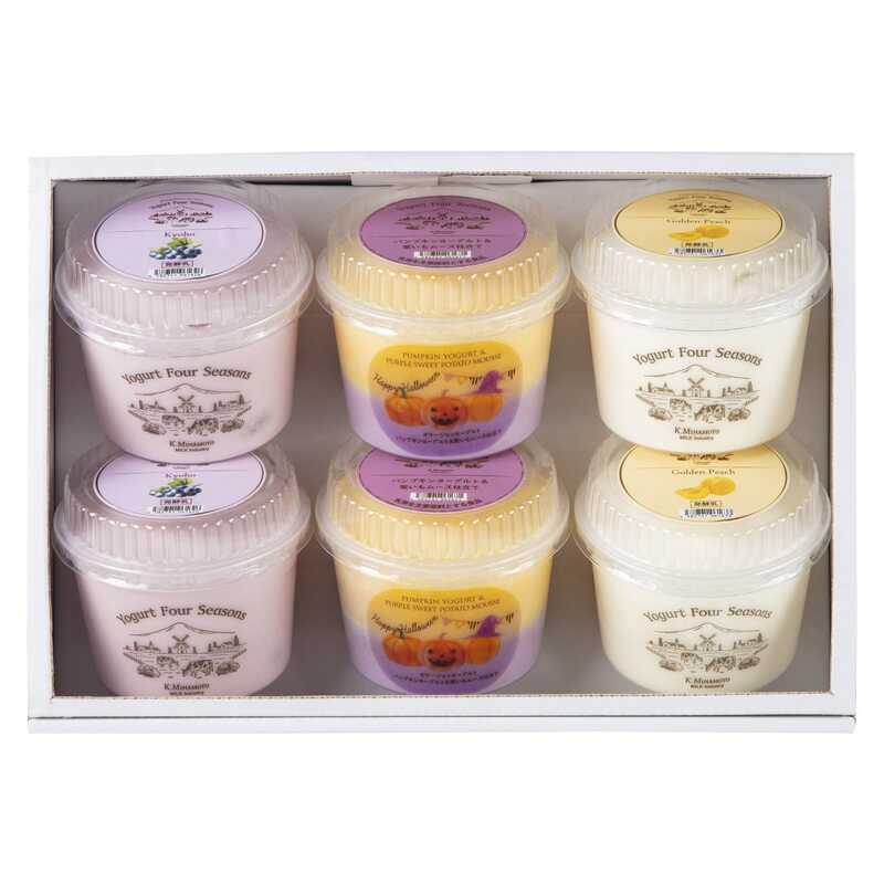 - カップヨーグルト(パンプキンヨーグルト&紫いもムース仕立てx2、巨峰x2、黄金桃x2)