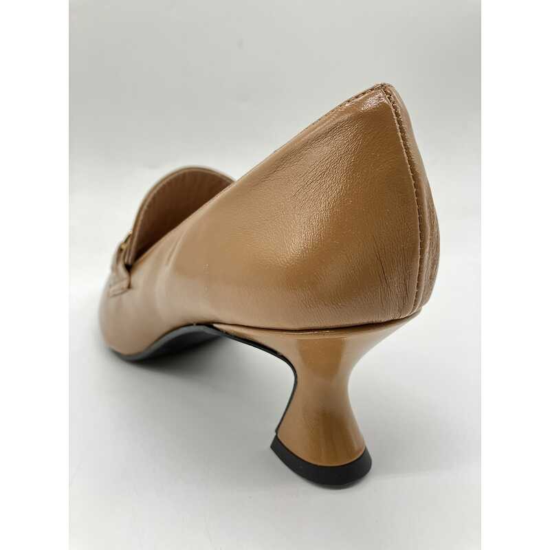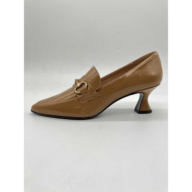 イタリア製ならではのしなやかで艶感のある上質な羊革を使い、ビット金具が特徴的なポインティッドパンプスです。甲を深く覆うデザインで、脱げにくい仕様です。