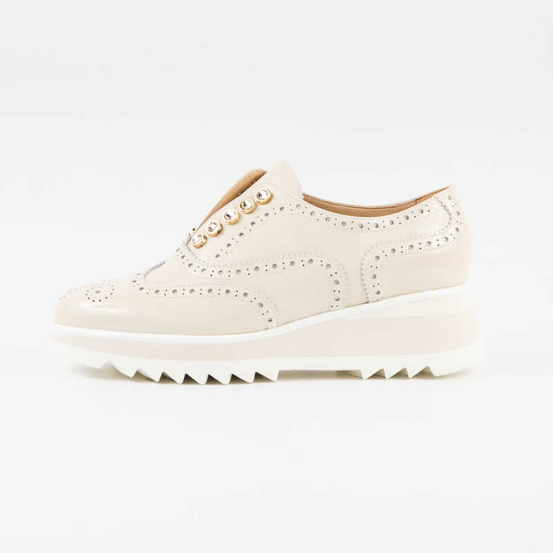 トレンド性のある厚底ウイングチップシューズです。ラインストーンが足下を華やかに演出してくれます。