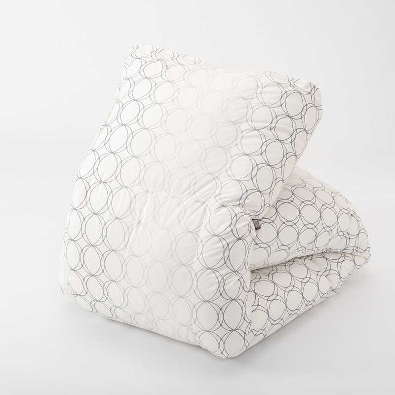- 側地:ポリエステル85%・再生繊維(セルロース)15%、詰物:ダウン90%・フェザー10%(ウクライナ産グレーグースダウン使用)、詰物重量:約1.1Kg