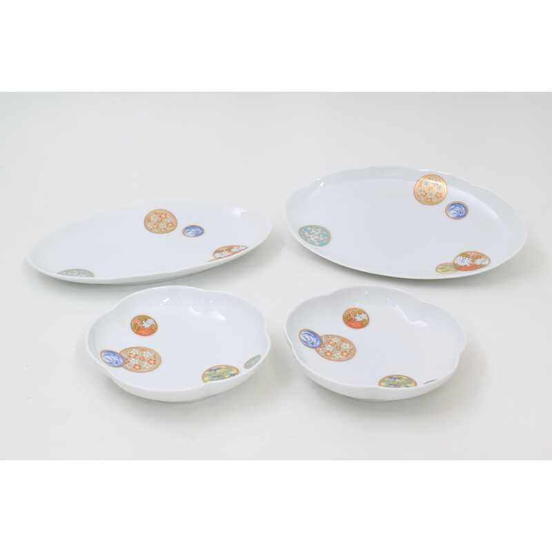 - 寿赤絵祝皿(白)×2、寿赤絵花型トレイ×2