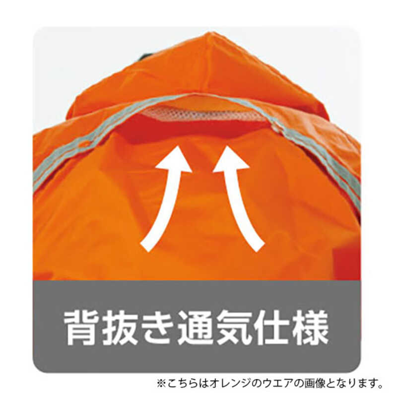 背抜き通気仕様になっており、大型通気口で蒸れにくく、腰回りは総ゴム入れのため、着心地も良いです。背中と袖にビーズタイプの反射帯がついているので、夜間の安全性も高まります。