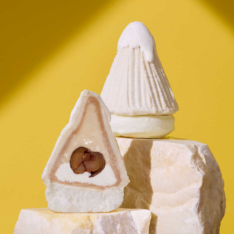 ラム香る洋栗クリームの山の中に、まろやかな和栗ソースをとろっとしぼって閉じ込めたスーパーメルティンモンブランです。スプーンですくうと、飲めそうなほどのとろとろ感。真っ白な山から栗の美味しさがとろけて溢れる、初めてのくちどけをお楽しみください。