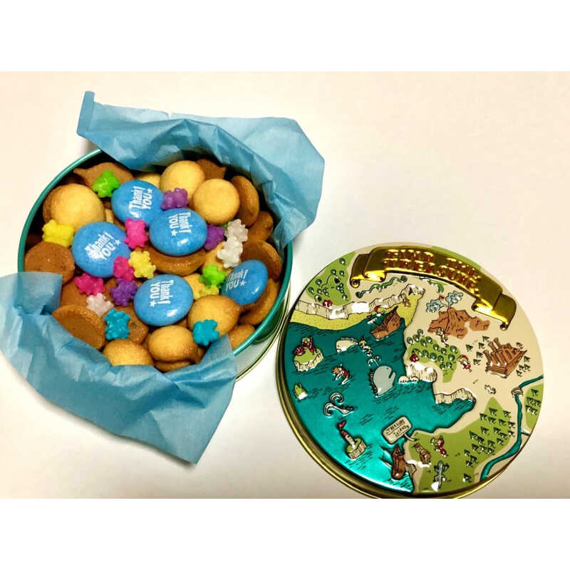 “Thank you”の文字が入ったマーブルチョコレートとクッキー、金平糖の詰合せ缶です。