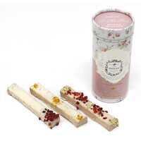 プチギフトとして喜ばれる3本入り。お洒落な筒形のパッケージ。食べるのがもったいないくらいに可愛い、華やかなデコレーションのラスクです。ラズベリーホワイトチョコ、フラワーピンクチョコ、オレンジホワイトの3種類のフレーバーです。