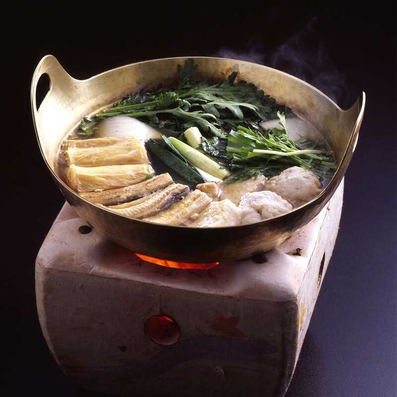 うなぎ料理の名店として各界の方々からご贔屓いただく、自慢の「うなぎ鍋」。竹茂楼自慢の白焼きうなぎとつみれをすっぽん入りスープでお召し上がり下さい。〆は少し残したうなぎとスープの味を調整し、わが家風のお雑炊にするのも人気です。