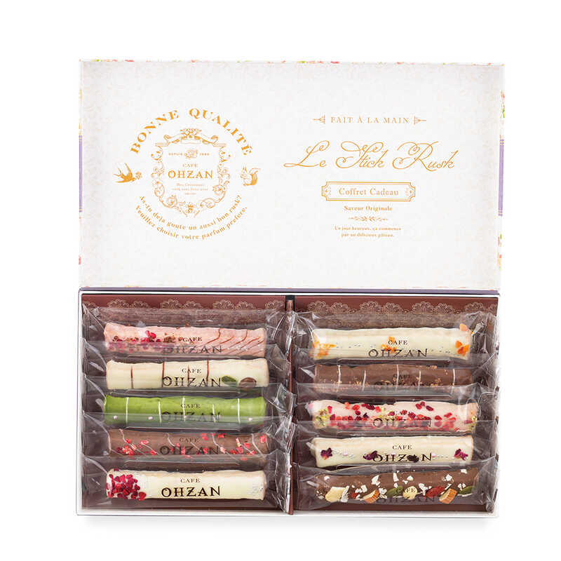 特別な日を彩る甘くて美味しいサプライズギフト。宝石箱のようなパッケージ。食べるのがもったいないくらいに可愛い、華やかなデコレーションのラスクです。大切な方への贈り物にぴったりなギフトセット。10種類のフレーバーがお楽しみいただけるスティックラスクです。