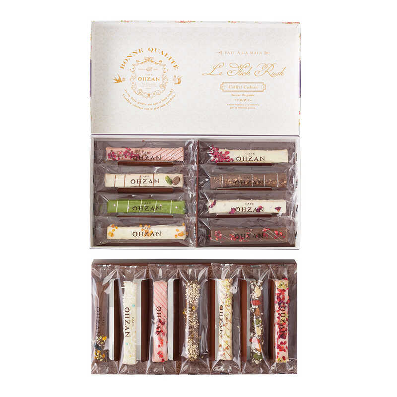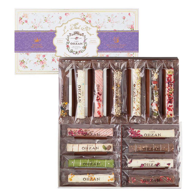 特別な日を彩る甘くて美味しいサプライズギフト。宝石箱のようなパッケージ。食べるのがもったいないくらいに可愛い、華やかなデコレーションのラスクです。大切な方への贈り物にぴったりなギフトセット。15種類のフレーバーがお楽しみいただけるスティックラスクです。