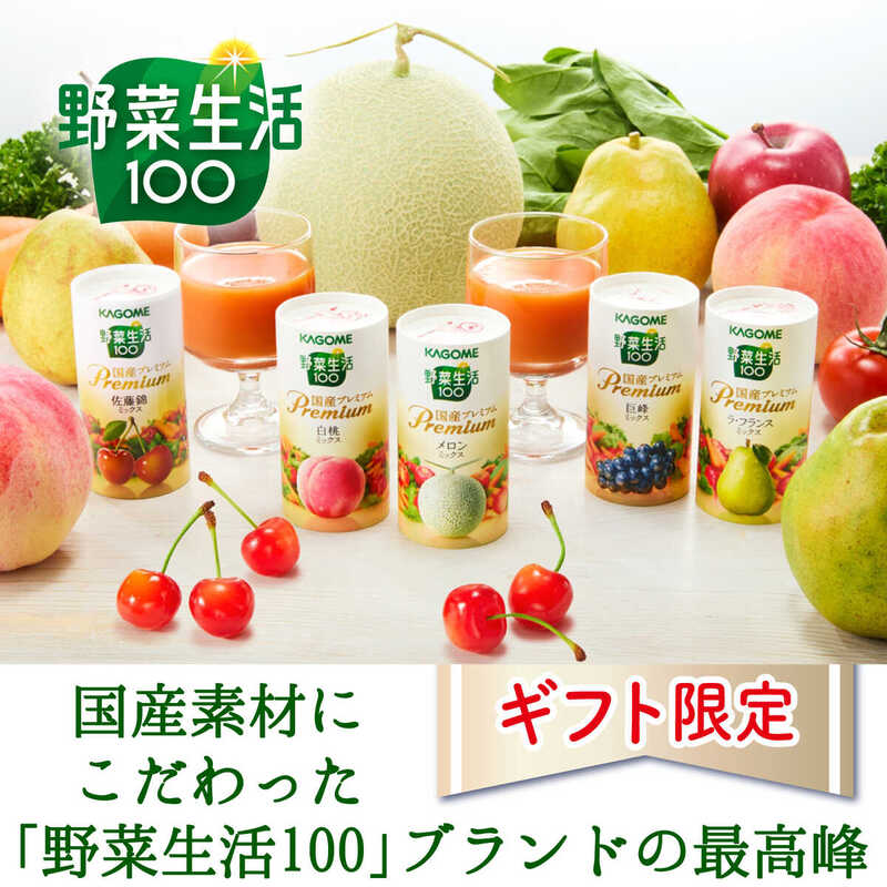 - 野菜生活100プレミアム/白桃ミックス・ラ フランスミックス・メロンミックス・佐藤錦ミックス×各2、巨峰ミックス×1(各125mL)