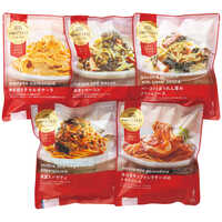 - 糸ひきモッツァレラチーズのトマトソース(285g)・ベーコンとほうれん草のクリームソース(290g)・博多明太子カルボナーラ(265g)・絶望スパゲティ(270g)・高菜とベーコン(270g)×各1