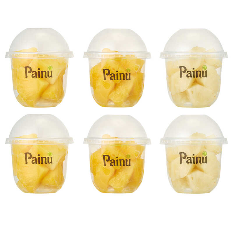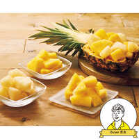 「ゴールドバレル」「ピーチ」「ポコット」の完熟パイナップルを収穫日に加工し、-40℃で瞬間冷凍。石垣島産ならではの芳醇な香りや甘みを。
