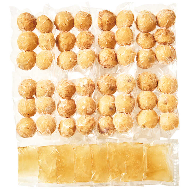 たこ焼きのルーツともいわれる、兵庫・明石市の名物! 明石産真だこと国内産小麦の小麦粉を使い、ひとつずつ丁寧に焼きあげました。