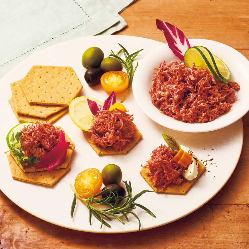 北海道白老町の国産黒毛和牛を贅沢に使い、発色剤や添加物を使わず「塩」だけで仕上げました。素材そのものの味わいをご堪能ください。