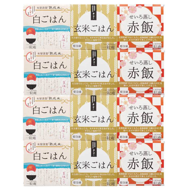 - 佐賀県産夢しずく(白ごはん・玄米ごはん)・せいろ蒸赤飯(各125g)×各4