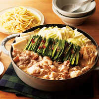 白味噌仕立てのこってりスープが、プリッとはじけるもつや野菜とひとつになり、深い味わいを生み出します。