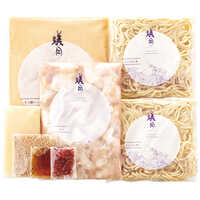 スープ(500g)・もつ(300g)・ちゃんぽん麺(150g×2)(計300g)・おろしにんにく(30g)・ごま油(15g)・ごま(10g)・タカノツメ(1g)×各1