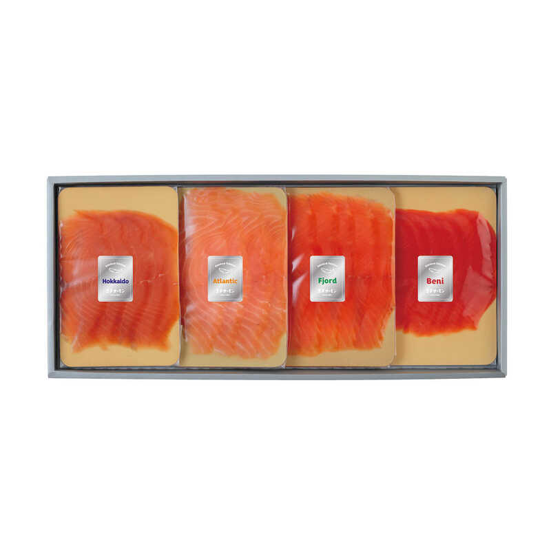 - フィヨルドサーモンスモークスライス・アトランスモークスライス・紅鮭スモークスライス・秋鮭スモークスライス(各50g)