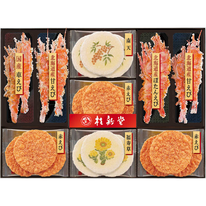 車えび姿焼き・ぼたんえび姿焼き×各1、甘えび姿焼き×2、赤えび炙り焼き×9、南天・福寿草×各3