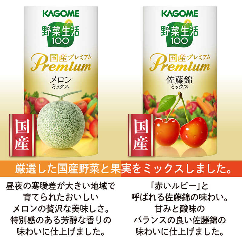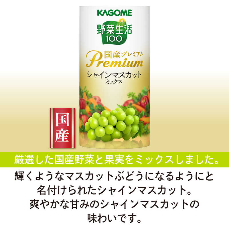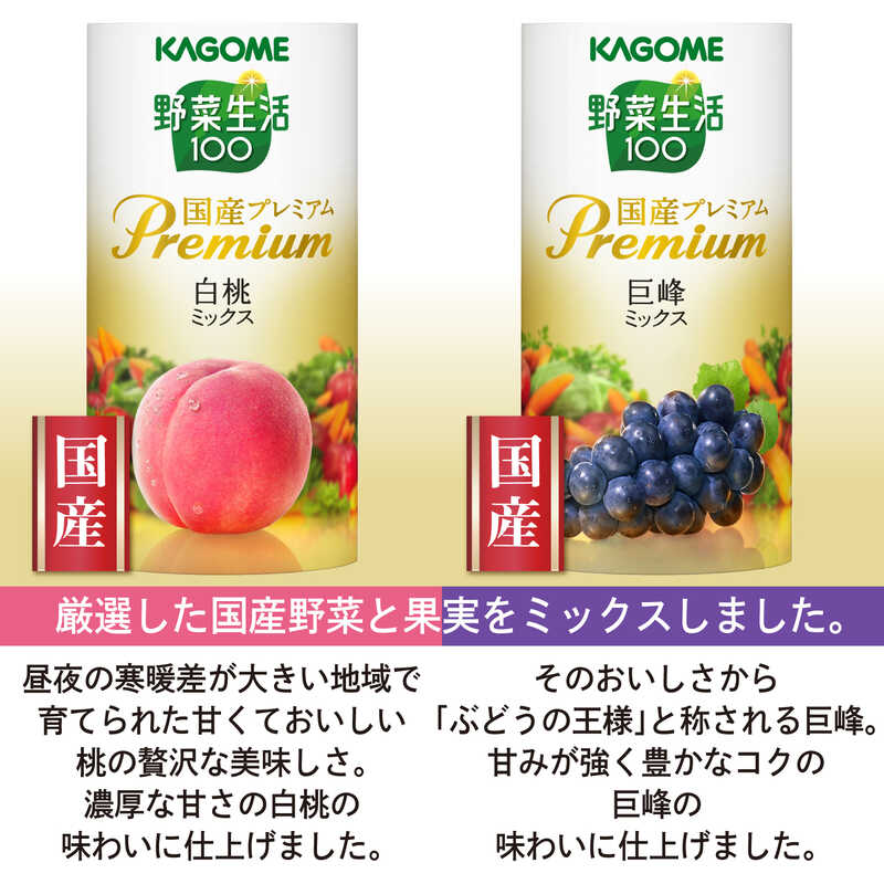 - 野菜生活100プレミアム/白桃ミックス・メロンミックス・佐藤錦ミックス・シャインマスカットミックス×各3・巨峰ミックス×2(各125mL)