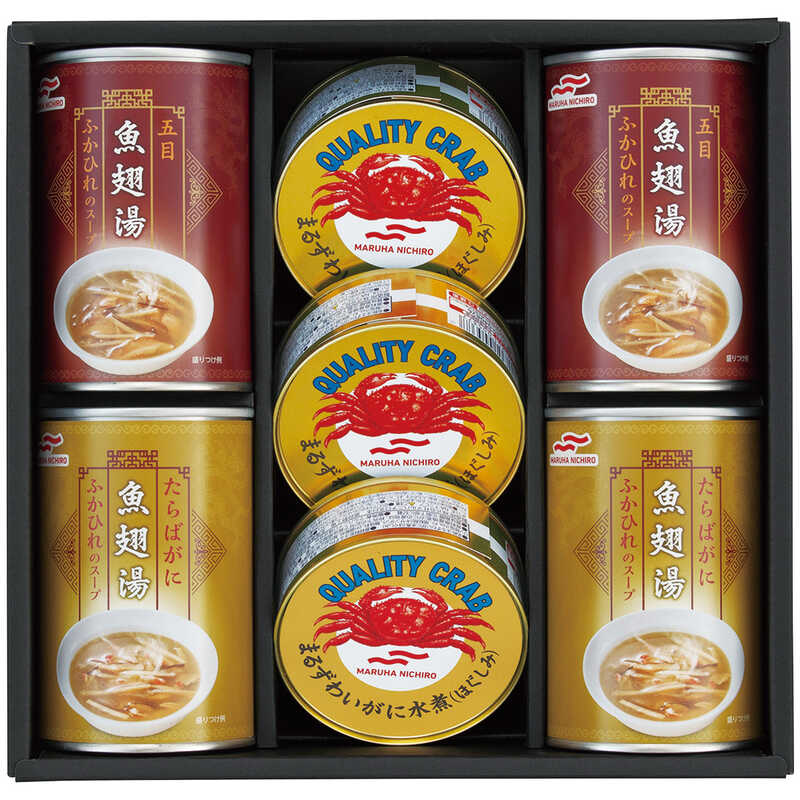 まるずわいがにほぐしみ(65g)×3、五目ふかひれスープ・たらばがにとふかひれのスープ(各290g)×各2