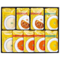 - 8種の野菜ポタージュ×3・コーンスープ・パンプキンスープ・ビーフカレー×各2(各120g)