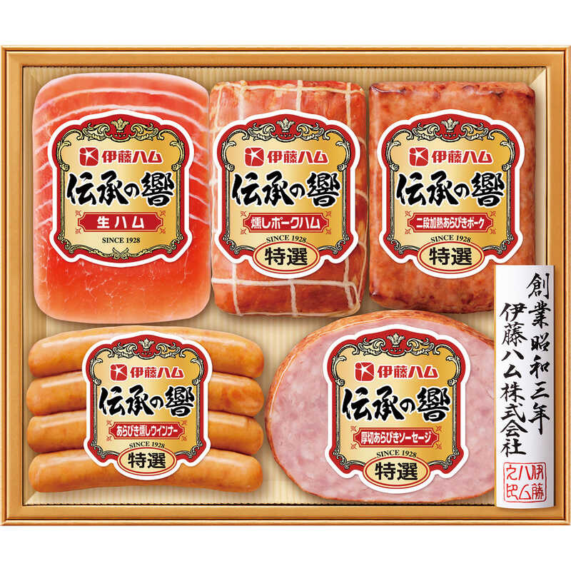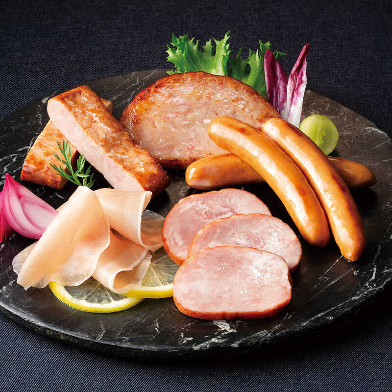 - 特選厚切あらびきソーセージ・特選あらびき燻しウインナー(各80g)・特選二段加熱あらびきポーク(110g)・特選燻しポークハム(180g)・生ハム(45g)×各1
