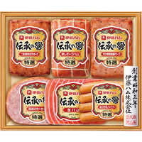 - 特選燻しポークハム(180g)・特選炙り焼黒胡椒ポーク(160g)・特選二段加熱あらびきポーク(110g)・生ハム(45g)・特選厚切あらびきソーセージ・特選あらびき燻しウインナー(各80g)×各1