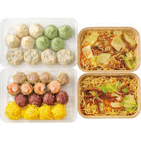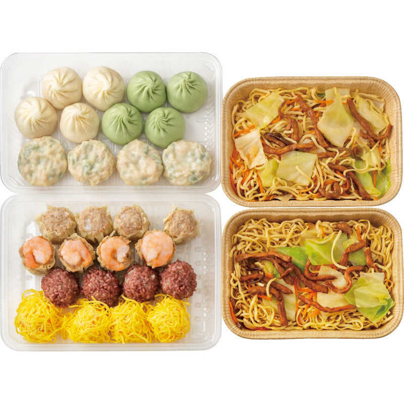 - 肉焼売・海老焼売(各35g)・紫もち米焼売・海鮮団子・海老ニラ焼きまんじゅう(各30g)・上海焼き小籠包・ゆず胡椒焼き小籠包(各28g)×各4、上海焼きそば(270g)×2