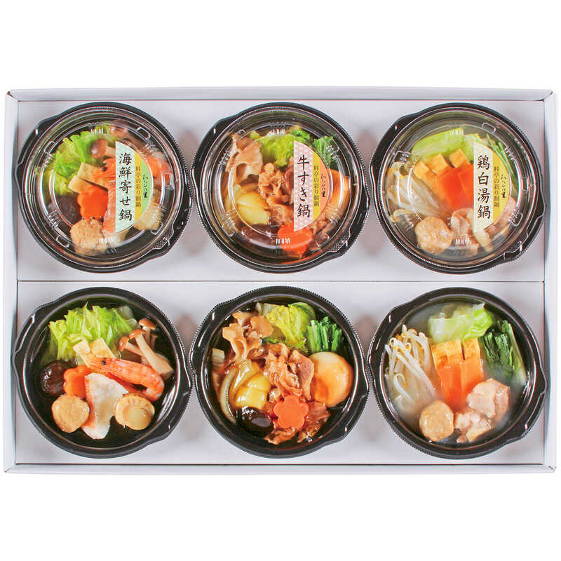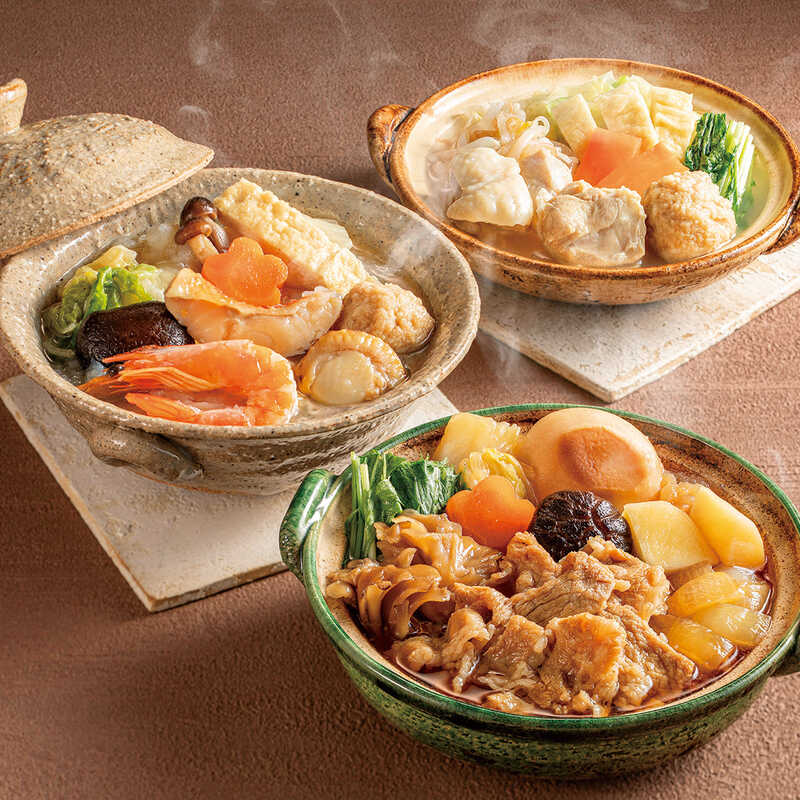 - 牛すき鍋(260g)・海鮮寄せ鍋(240g)・鶏白湯鍋(250g)×各2