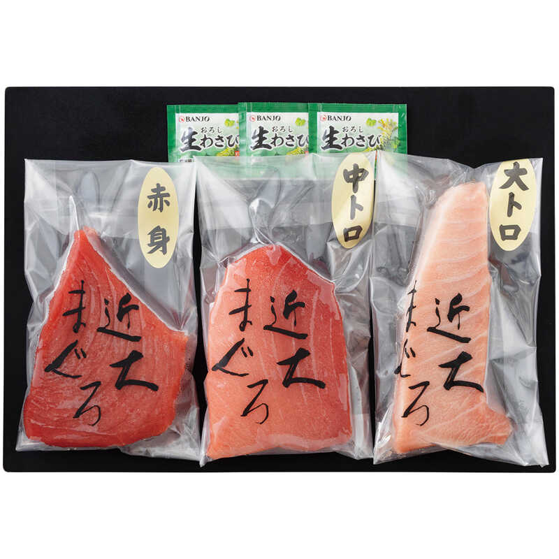 - 近大マグロ(大トロ・中トロ・赤身(各80g)×各1)、わさび×3