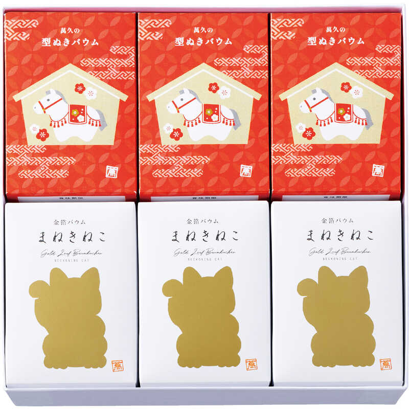 - 萬久の型ぬきバウム 絵馬・金箔バウム まねきねこ×各3)