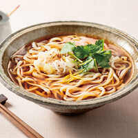 越中魚津神社で「縁起祈願」「疫病退散祈願」をした富山県産そば粉を、故郷を思い出すような「極太・粗挽き」の八割そばに。だし香る「山崎特製そばつゆ」で、一年を締めくくる年越しそばをどうぞ。