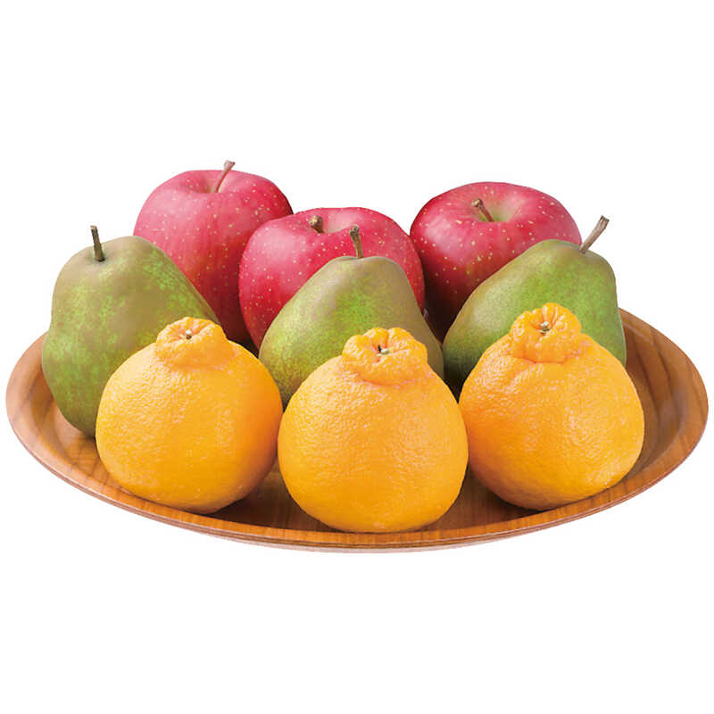 - サンふじ×3玉(計750g)、デコポン×3玉(計750g)、ラ フランス×3玉(計900g)