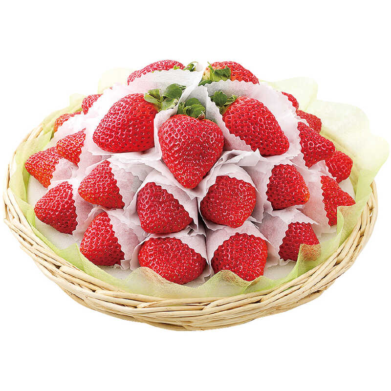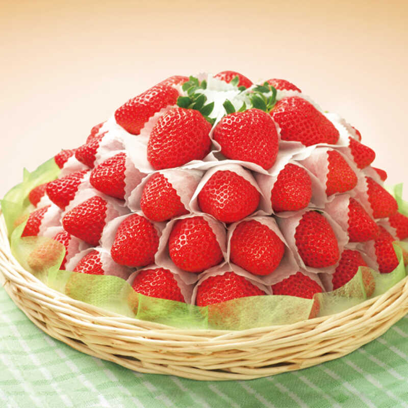 甘みと酸味のバランスが良いいちごを、1粒ずつ薄紙に包んで盛り付けました。ブーケのように華やかで、パーティーなどにも最適です。
