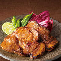 生産から肥育まで一貫し育てた黒豚を、独自の味噌だれに漬け込みました。黒豚のうまみと香ばしい味噌の香りが絶妙。