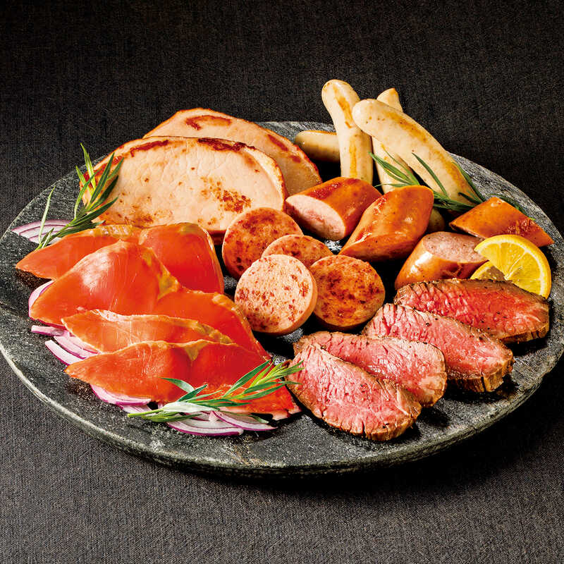 人気のソーセージやウインナー、上品な口あたりのスモークサーモンなど、神戸っ子に70年以上にわたり親しまれている味をセット。