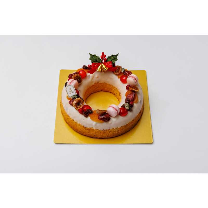 季節限定のクリスマスリース型の焼菓子です。爽やかなレモン香るバター生地を焼き上げ、色とりどりのドライフルーツやマカロンを飾り、ホワイトチョコレートで仕上げました。