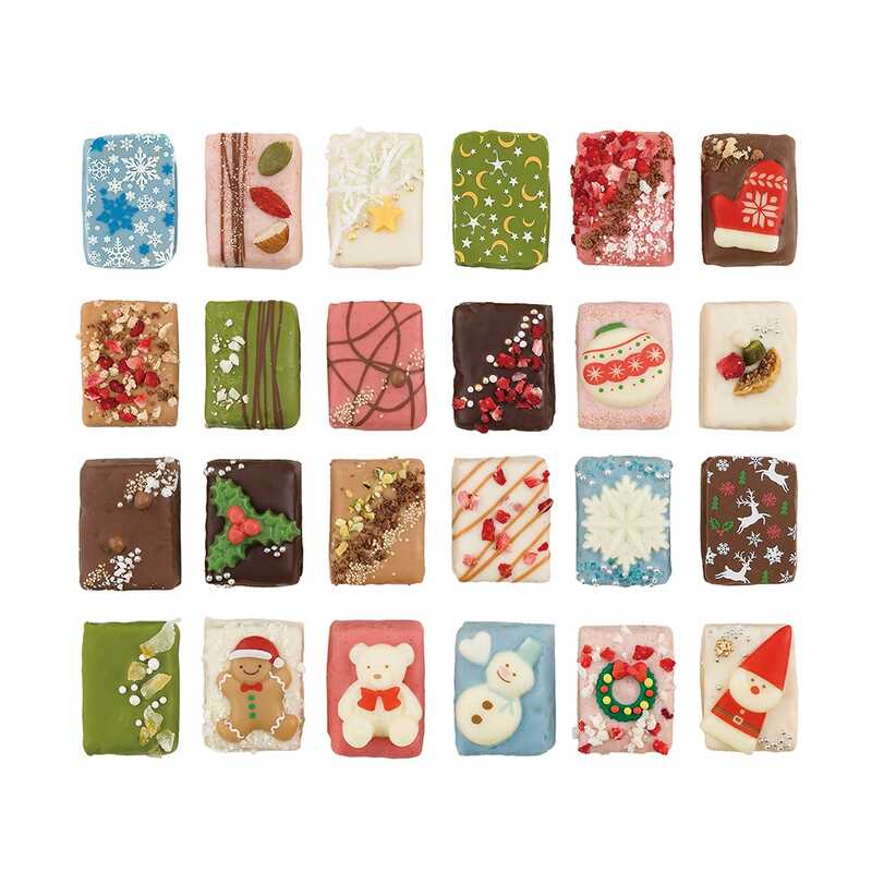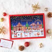 絵本仕立てでおつくりしているXmasカレンダー、観音扉を開けてみると12/24までのカレンダーになっています。